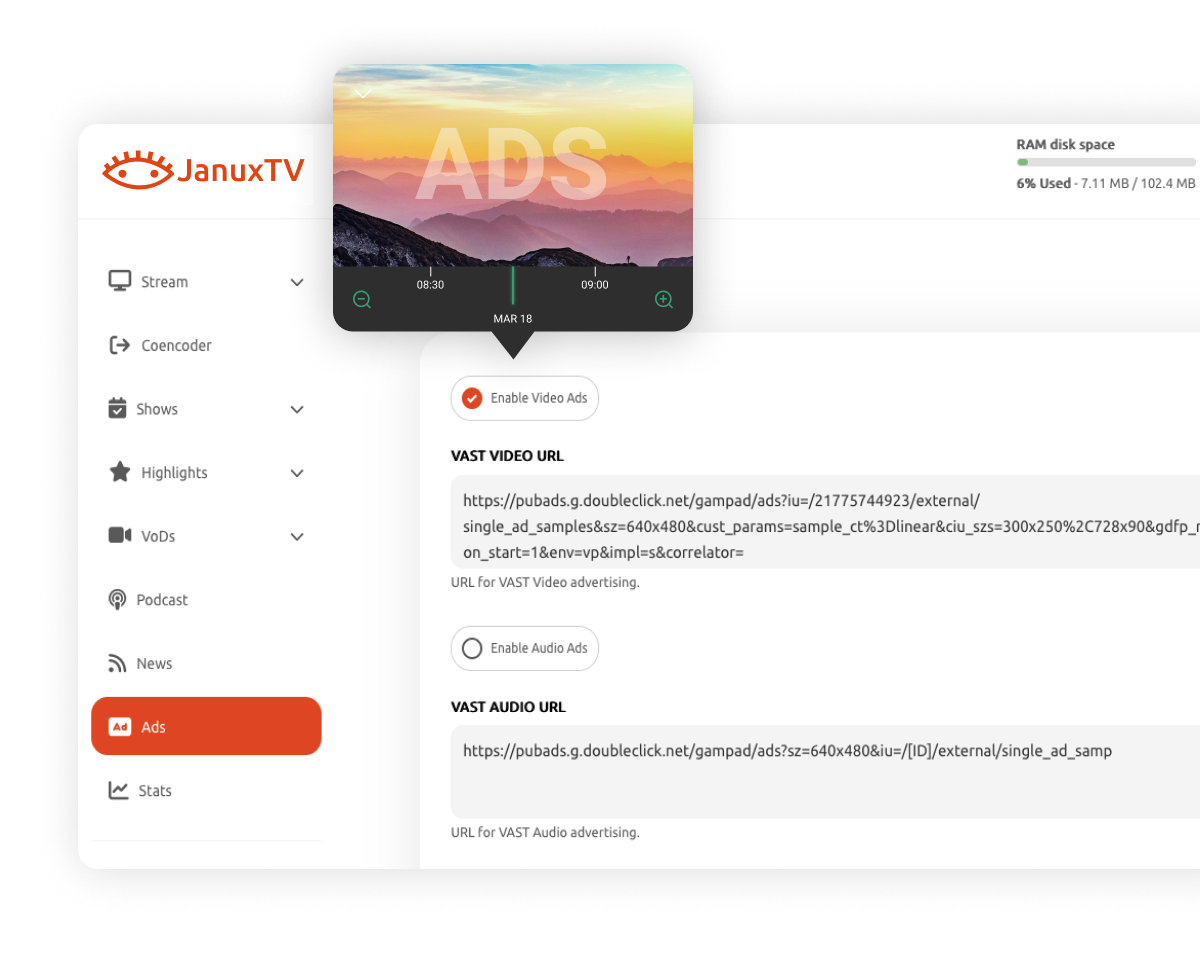 Your ads, your revenue Publish ads from your customers and keep 100% of the revenue. JanuxTV does not take a cut from it.